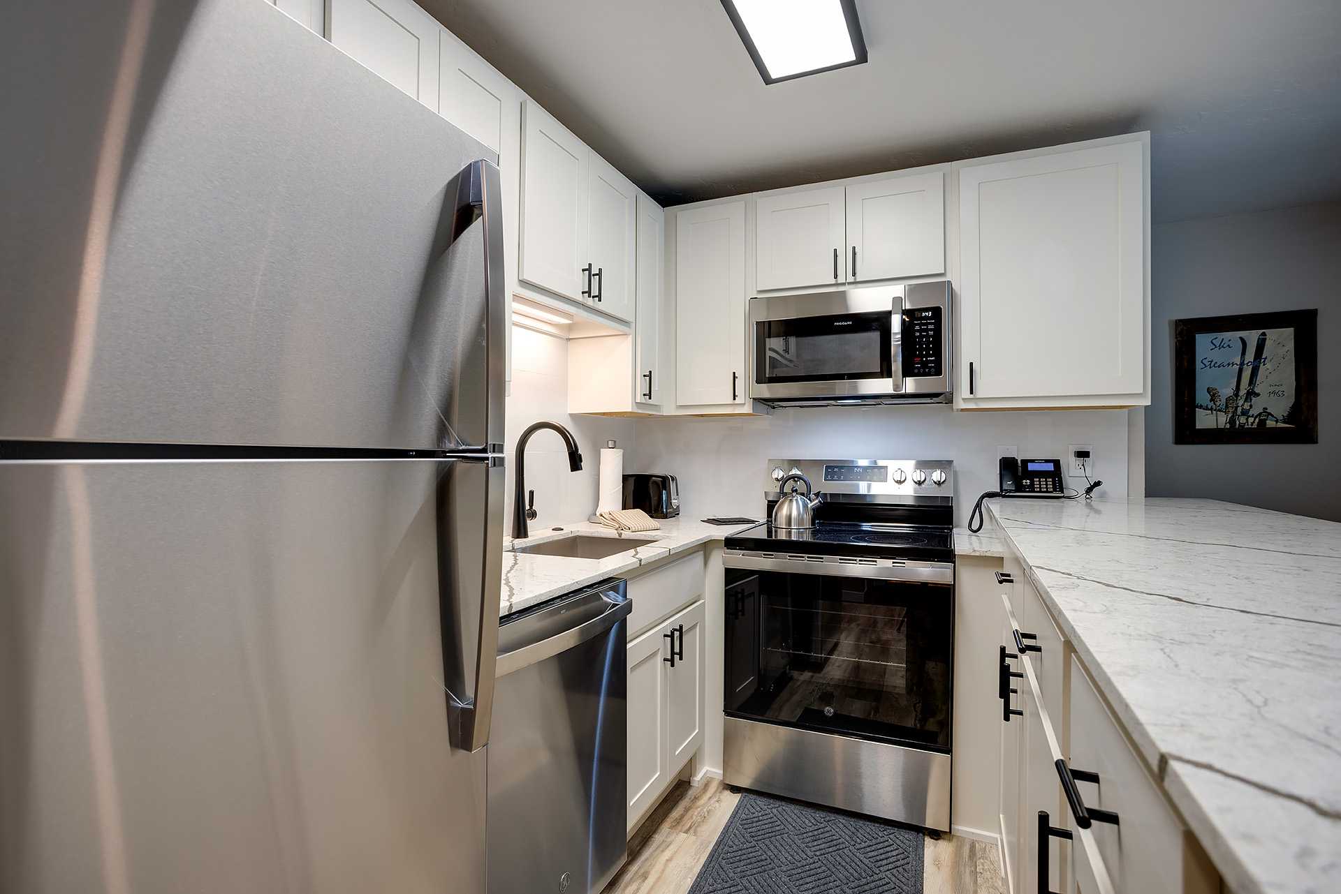 Ski-In/Ski-Out Storm Meadows East 42: Ideally located just steps from the slopes of Steamboat Resort. With brand new everything, this modern little gem has been completely remodeled as of early Dec 2025. All new furniture, LVP flooring throughout, new bright kitchen with stone countertops and updated bathroom.