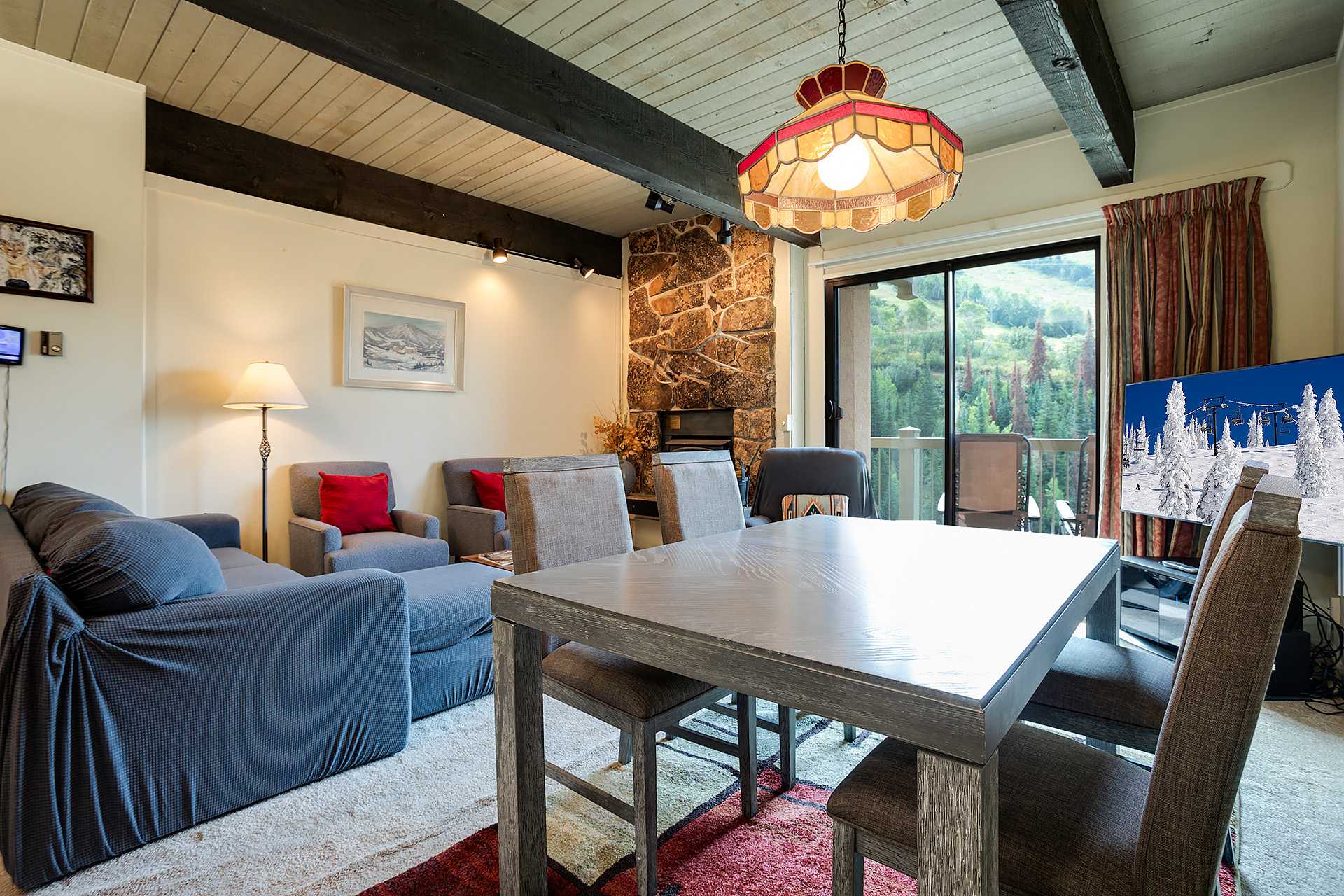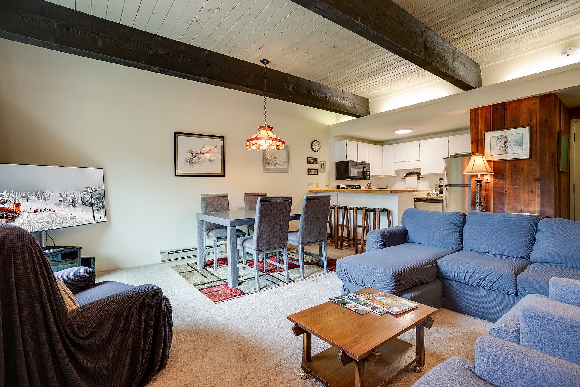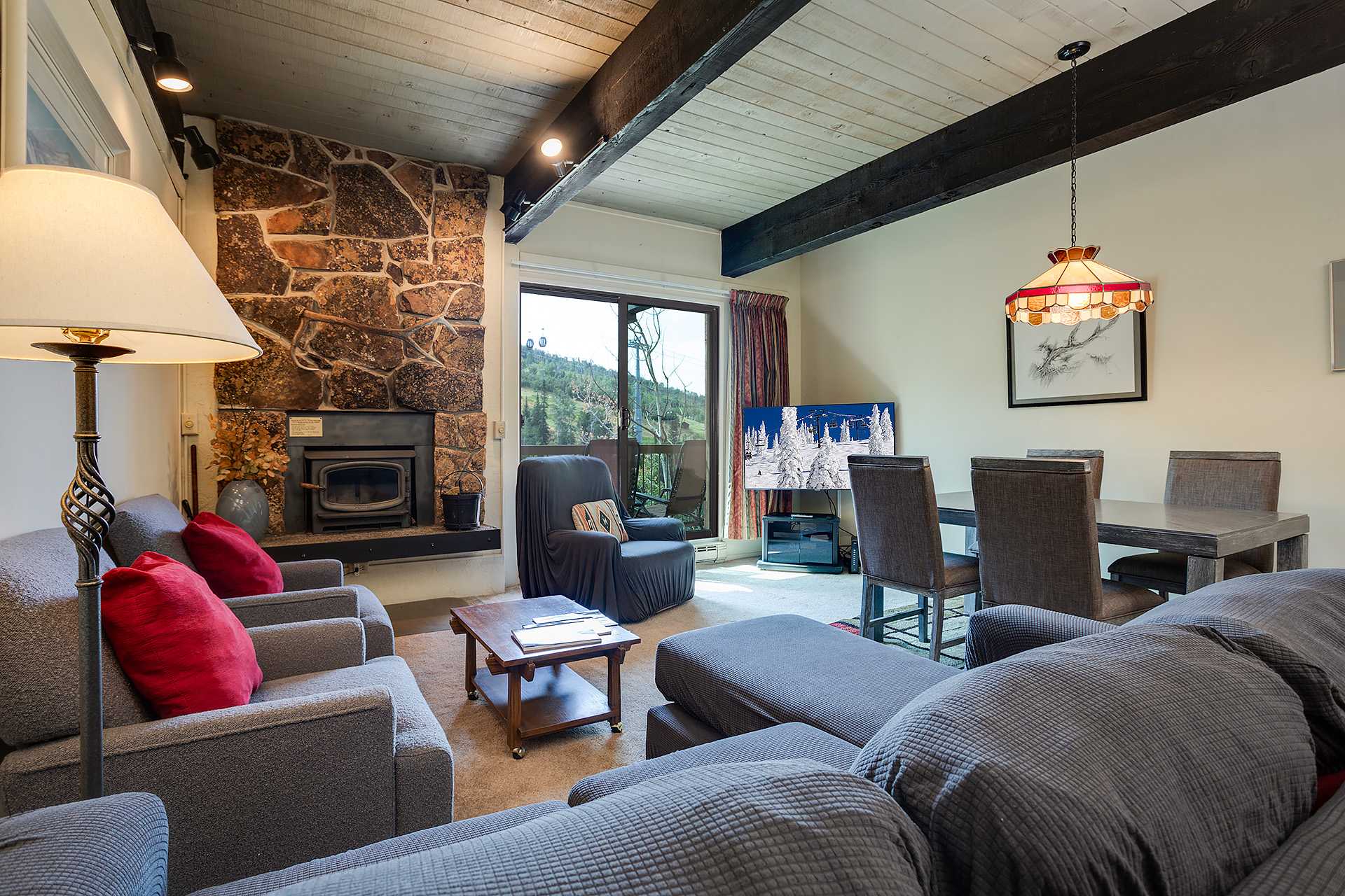 Enjoy access to incredible amenities and a fantastic location that provides the ideal home base for both outdoor adventures and peaceful relaxation. Cozy up in the spacious living room, complete with a wood-burning fireplace, a large flat-screen TV, and a private deck that overlooks the resort. Whether you're here to ski, hike, or unwind, this property offers everything you need.